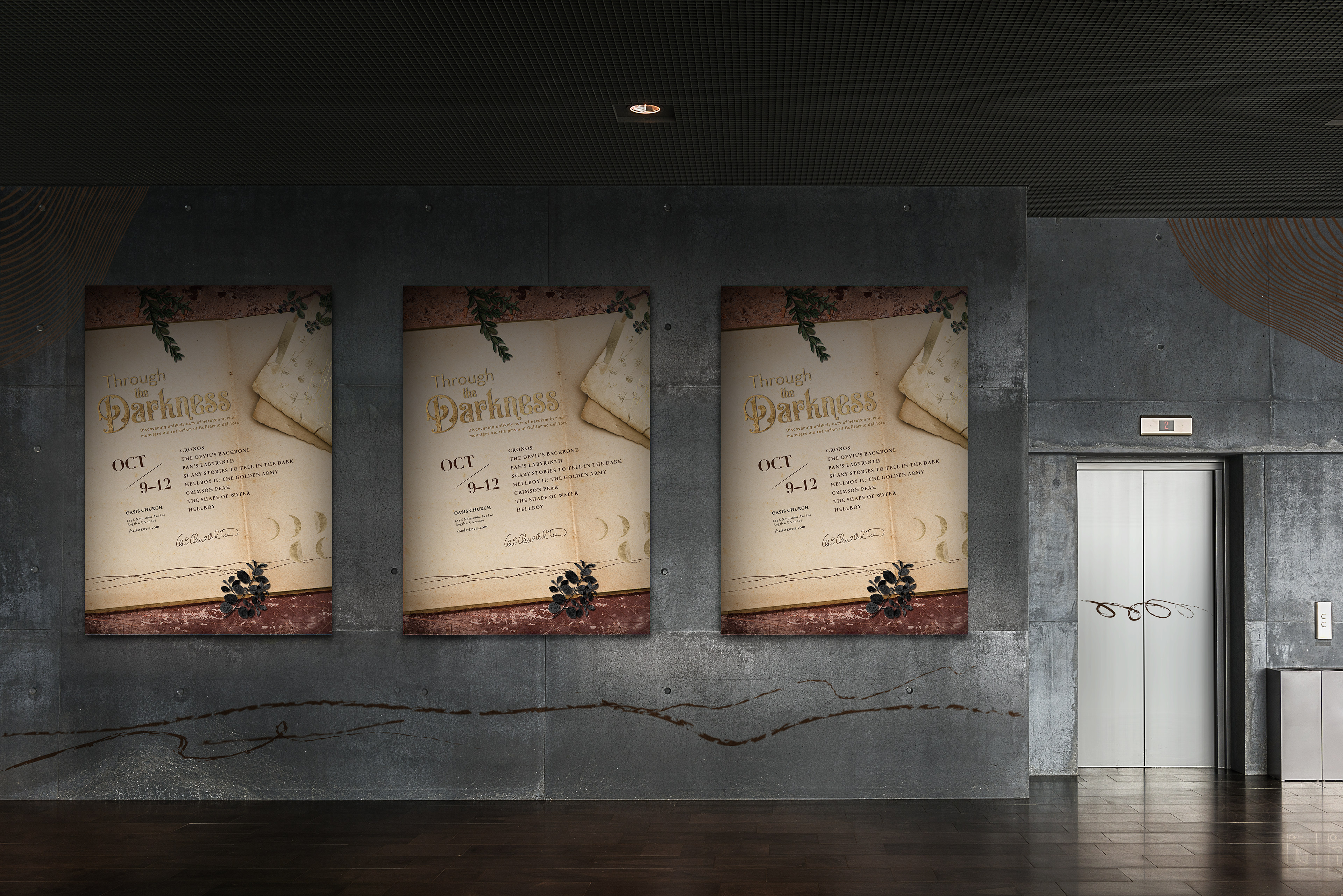 The poster uses the festival theme which is the mad scientist journal. The poster shows one of the spreads of the journal which also connect to the Monster catalog.